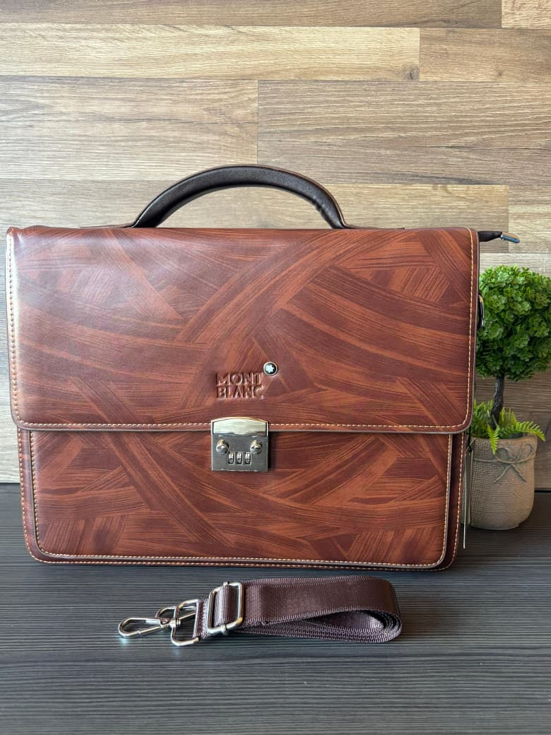 Portafolio / Maletin Mont Blanc cafe rayado liso
