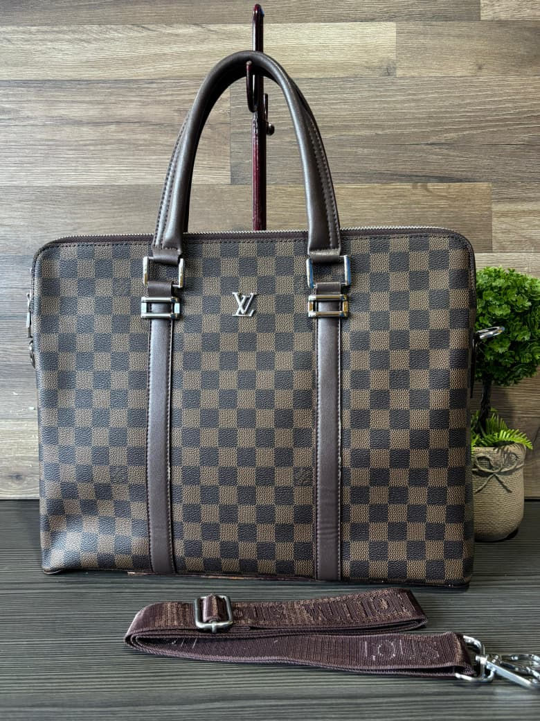 Portafolio / Maletin Louis Vuitton cafe estampado cuadros